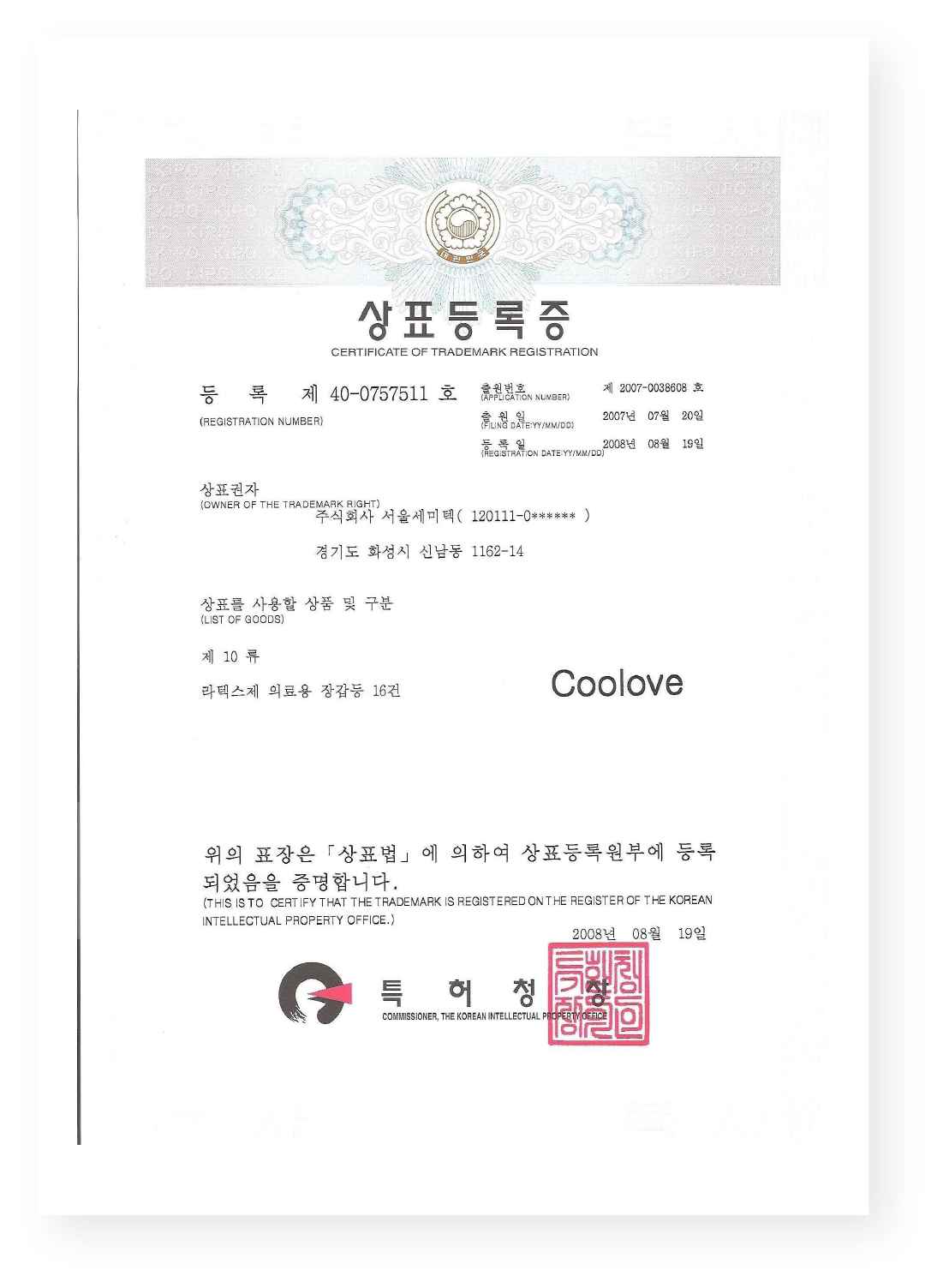 상표등록증 - Coolove